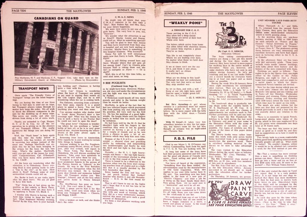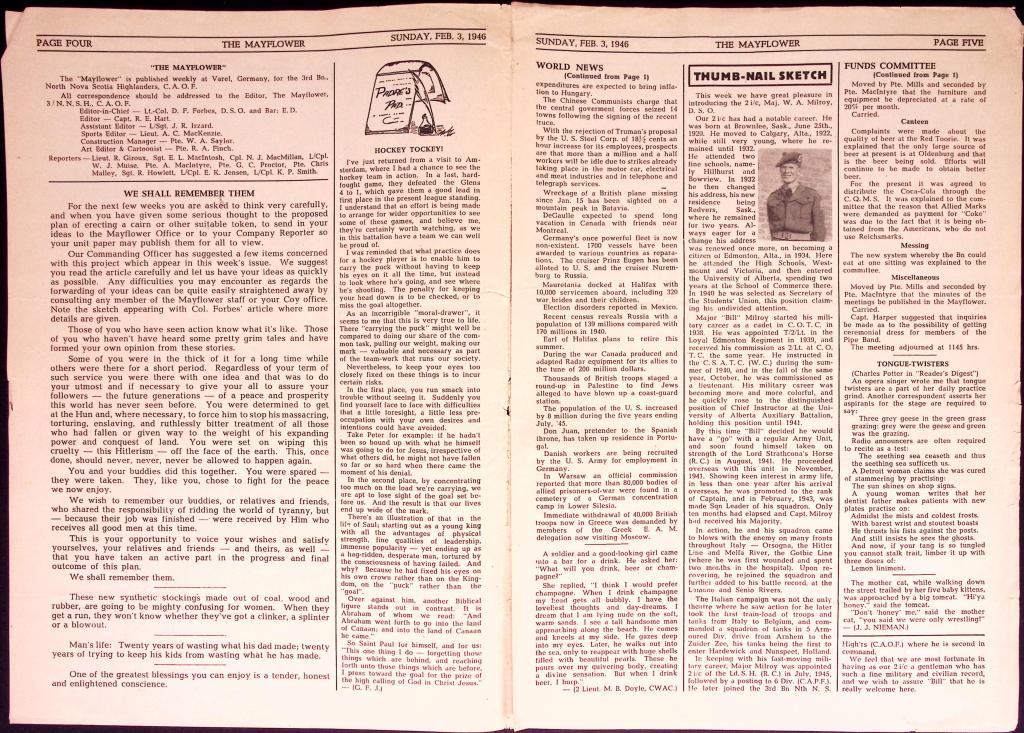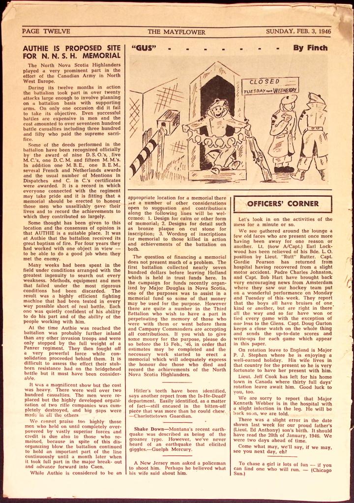A copy of the Nova Scotia Highlanders newspaper, The Mayflower. Dated February 3rd, 1946. Share this: Share on X (Opens in new window) X Share on Facebook (Opens in new window) Facebook Like Loading... Related