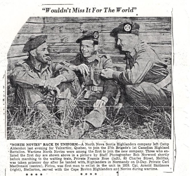 Private Francis Rose of Halifax (left), Private Carl Macdonald of Pictou (center), and Cpl. Arnold Skidmore of Stellarton (right).